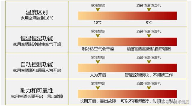 看完了上圖,答案顯而易見。家用空調的溫度無法達到酒窖的要求,無法做到恒溫恒濕,并不適宜用在酒窖當中。酒窖恒溫恒濕空調有高精度,低故障率、耐用等優(yōu)點,還能自動調節(jié)室內(nèi)溫度、濕度,這是一般家用空調不具備的。所以,為了美酒更好的儲存,還是選擇專業(yè)的酒窖恒溫恒濕機比較好。